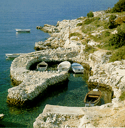 Colocados los aparejos cada uno en su sitio, nos sentamos en la nave, que era conducida por el viento y el piloto. Entonces alcé la voz a mis compañeros, con el corazón triste, y les hablé de este modo: