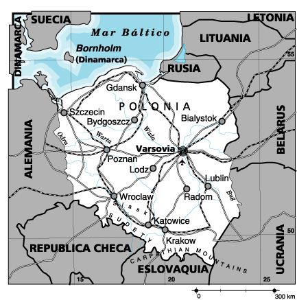 | Population: 38,022,140 inhabitants Land surface: 312,685 km2 Currency: Polish Zloty GDP per capita: US$ 13,847 Language: Polish Official name: Polska Rzeczpospolita. Capital: Warsaw (Warszawa) 2,200,000 inhabitants (2003). Other cities (inhabitants – 2000): Lodz 1,017,300; Krakow 784,800; Wroclaw 634,600; Poznan 580,200. Government: Bronisław Komorowski, president since August 2012 Religion: Most of the population is Catholic (90,7%); Orthodox (1.4%); Protestant and other (7.9%). Geography: The north of Poland has a lot of plains, where the Wisla, Warhat and Oder rivers flow. There are also coniferous forests, and rye, potatoes and flax are grown. In the center of Poland there are plains and plateaus with arable land and great agricultural production: sugar beet and cereals. The southern region on the northern slopes of the Carpathians is less fertile. There are many mineral resources: coal in Silesia (fourth largest producer); sulfur in Tarnobrzeskie (second largest producer); copper, zinc and lead. The most important industries are of steel, chemicals and naval construction. |