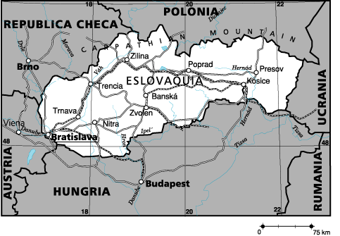 Currency: Slovak Koruna GDP per capita: US$ 15,871 Language: Slovak Official name: Slovenska Republika. Capital: Bratislava 460,000 inhabitants (1999)Other cities (inhabitants – 2000): Kosice 244,400; Presov 95,300; Zilina 87,600; Nitra 87,400; Banská Bystrica 84,400. Government: parliamentary republic Religion: Catholics 60.3%, not religious and atheist 9.7%, Slovak evangelical 6.2%, Protestants 3.5%, Greek Catholics 3.4%, Orthodox 0.7%, others 18%. Geography. The Carpathian Mountains occupy a large part of Slovakia. The mountainous areas are covered by forests, which sustain an important logging industry. Agriculture is concentrated in the fertile plains of the Danube and Uh rivers (grasses, potatoes, sugar beet, fruit and vegetable products). The country has abundant resources of metals, copper, zinc, lead and mercury. There are also deposits of oil, coal and natural gas. |
