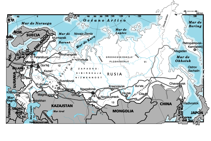 Geography. Russia is divided into five great regions. It is the world’s largest country with 17 million km2. The European region, between the western border and the Ural Mountains (conventional boundary between Europe and Asia), is a vast plain crossed by the Volga, Don and Dnieper (Dnepr) rivers. This region is the richest region of the Russian Federation. The Ural Mountains, which extend from north to south, have important mineral deposits and abundant petroleum in its peripheral zones. Siberia, between the Ural Mountains and the Pacific coast, is rich in mineral resources; however, it is scarcely populated due to the harsh weather conditions. The Caucasus region is a vast steppe that extends north of its own mountains, between the Black and the Caspian seas. From Central Asia, a large depression comprising of deserts, steppes and mountains extends. In the plains, cereals, potatoes and sugar beets are grown; in Central Asia, cotton and fruits are grown; in the Caucasus and the Black Sea subtropical area, vineyards and citrus are grown. The country has vast mineral resources: oil, coal, iron, copper, zinc, lead, bauxite, manganese and tin in the Urals, Caucasus and Central Siberia. |