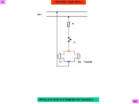 El esquema nos representa el funcionamiento de dos timbres o zumbadores en paralelo con un pulsador.