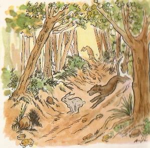 crez-ca el conejo se la comerá, el sendero atravies-a el bosque. Los