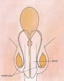 2. Aparato reproductor masculino Los órganos sexuales del hombre son fundamentalmente los testículos y el pene. - Los testículos están suspendidos en una especie de saco llamado escroto. Su misión es producir espermatozoides que son las células sexuales masculinas. - El pene es el órgano por el que los espermatozoides salen al exterior. |